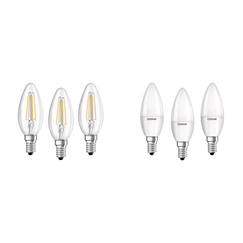 Osram Lampadine LED Candela, 4W Equivalenti 40W, Attacco E14, Luce Calda 2700K, Confezione da 3 & Lampadina LED E14 BASE Classic B 40 | 4,9 W - 40 W equivalente a incandescenza