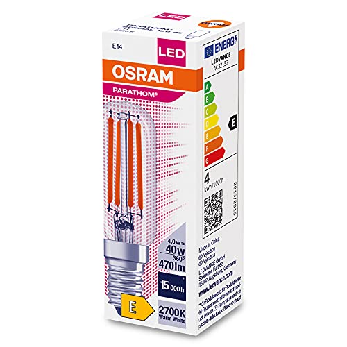 OSRAM - Lampadine speciali a LED per frigoriferi con attacco E14, risparmio energetico, luce bianca calda, ricambio da 40 W, opaca, per PARATHOM Special T26 40 4 W/2700 K E14