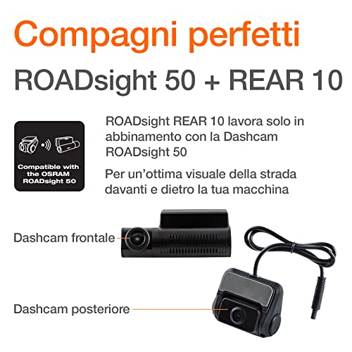 OSRAM ORSDCR10 Rear 10, Dash Cam, Telecamera Posteriore per Auto, Full HD 1080p, 30 fps, 130° grandangolo, Funziona in Combinazione con la Fotocamera Anteriore ROADsight 50, Grandangolare 130°