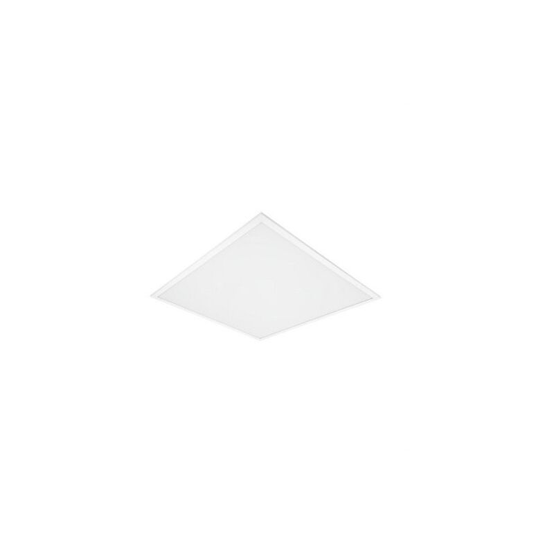 Luminaria ECO CLASS PANEL 600 36W 840. Plafoniere quadrate a pannello incassato, 600 x 600 mm. Caratteristiche del prodotto: Durata media (L70/B50): fino a 50.000 h (a 25 °C). Scocca in alluminio estruso. Diffusore in polistirene. Vantaggi del prodotto: Bassa frequenza di lampeggio grazie a un meccanismo di controllo elettronico speciale. Risparmio energetico grazie all'efficienza del sistema fino a 90 lm/W. Rapida integrazione nel soffitto grazie a un'installazione di montaggio semplice. Aree di applicazione: Sostituto diretto per apparecchi con lampade fluorescenti. Corridoi. Uffici. Sale conferenze. Aree di accoglienza. Ascensori. Adatto per sistemi a soffitto incassato con griglia 600 x 600 mm. Attrezzature / Accessori: Accessori disponibili per diverse opzioni di montaggio.