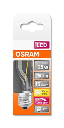 OSRAM LED Retrofit CLASSIC P DIM Lampadina LED, Attacco: E14, Bianca Calda, 2700 K, 3.30 W, Equivalenti a 25 W, LED STAR CLASSIC B, Chiaro, Taglia Unica