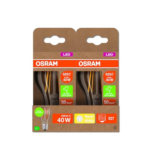 Osram Led a Risparmio Energetico, Lampadina a Filamento di Vetro, E27, Bianco Caldo, 3000K, 2,5 Watt, Sostituisce La Lampadina da 40W, Efficiente E a Risparmio Energetico, Confezione da 6 Pezzo
