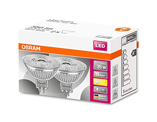 OSRAM Spot MR16 Lampadine LED, 4.6 W Equivalenti 35 W, Attacco GU5.3, Luce Calda 2700K, Confezione da 10 Pezzi