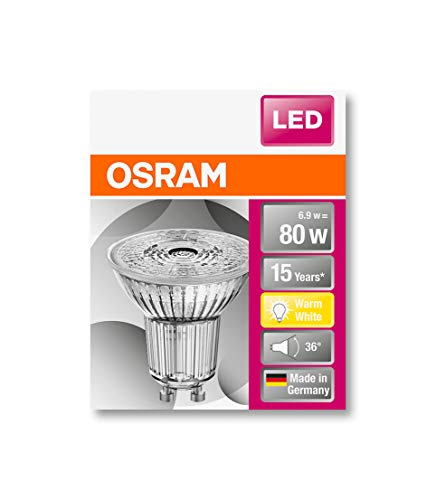 OSRAM Spot PAR16 Lampadine LED, 6.9 W Equivalenti 80 W, Attacco GU10, Luce Calda 2700K, Confezione da 10 Pezzi