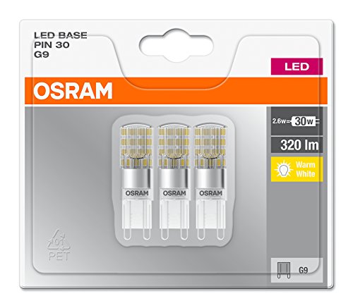 Osram LED Star pin G9/LED lampadina: G9, 2,60 W, 30 W di ricambio per, Trasparente, Bianco caldo, 2700 K, 3 pezzi