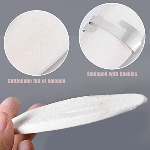 FACILE DA INSTALLARE: Dotato di una robusta staffa in metallo, che può fissare le ossa del pesce su ciascun lato della gabbia, ma assicurati che il lato morbido della piastra marrone chiaro sia rivolto verso gli uccelli.