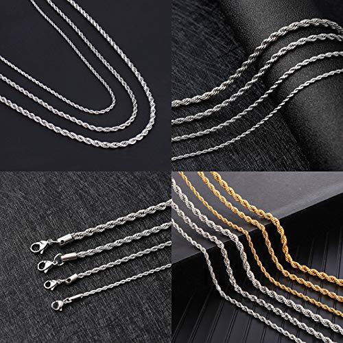 OSTAN Collana da Uomo Donna Catena di Corda Intrecciata Collegamento in Acciaio Inossidabile Larghezza 4 MM Lunghezza 50 CM Argento