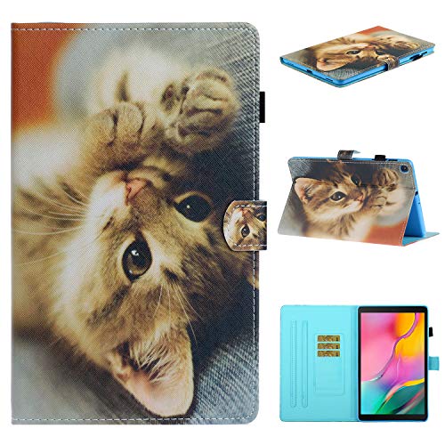 Ostop Compatibile con Cover Samsung Galaxy Tab A 10.1 2019(SM-T510/T515),Custodia Tablet Flip Slim Cover Porta Carta Portafoglio in Pelle PU con Funzione Supporto e Portamatite,Gatto Carino