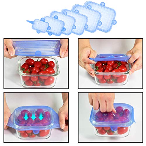 Osuter 11PCS Coperchio Silicone Alimenti Giro e Rettangolo Silicone Coperchi Pentola per Contenitori Piatti Pentole Scodelle Tazza