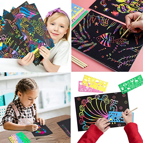 Osuter Disegni Scratch Art,60PCS Arcobaleno da Grattare con 6PCS Stilo e 4PCS Disegno Stencil Righelli Rainbow Scratch Paper per Disegnare e Bricolage