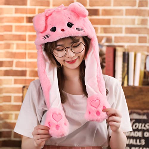 Osuter Orecchie di Coniglio Cappello,2PCS Funny Peluche Cappellino Cappello Peluche Moving Ears Bello Cappello Orecchie per Donna Giocattoli Regalo(Gatto)