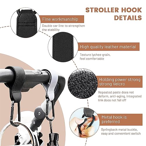 Capacità di carico elevata: La fibbia da arrampicata può sostenere fino a 50 chilogrammi. Puoi appendere una varietà di borse o borse fasciatoio resistenti al tuo passeggino.