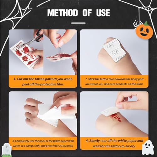 OSUWLSI Tatuaggi Halloween Ferite, 10 Pezzi Tatuaggi Temporanei Cicatrici Halloween, Tatuaggi Finti Halloween, Adesivi Sanguinosi Impermeabile per Trucco di Halloween