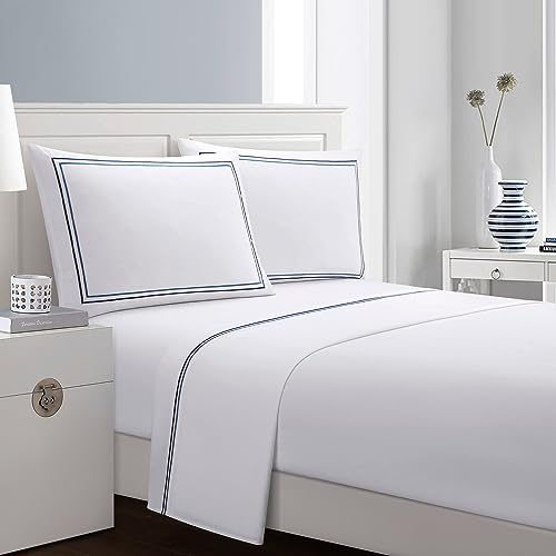 OSVINO Set di lenzuola per hotel per letto king size, 4 pezzi, ultra morbido, con tasca profonda, set di lenzuola e 2 federe e lenzuolo con angoli, bianco e blu