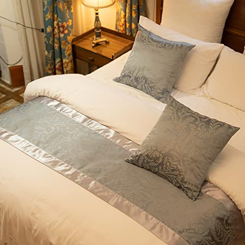 OSVINO Runner da Letto Matrimoniale Grigio Argento Dorato Raso Copriletto Elegante Corridore Liscio Classico Antico per Alberghi Hotel Camere Letti, 180x50cm per 120cm Letto