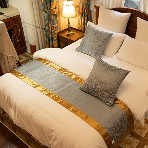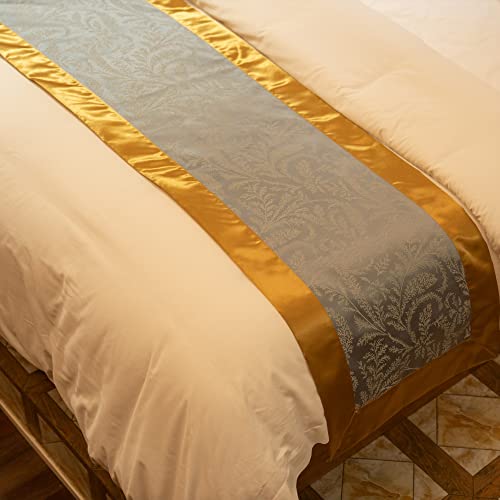 OSVINO Runner da Letto Matrimoniale Grigio Oro Dorato Raso Copriletto Elegante Corridore Liscio Classico Antico per Alberghi Hotel Camere Letti, 240x50cm per 180cm Letto