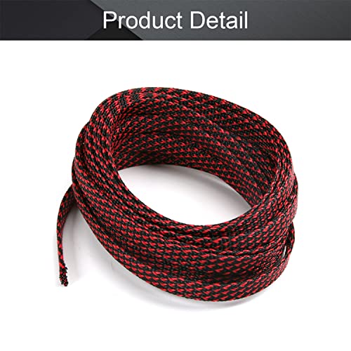 Othmro - Guaina intrecciata espandibile, 10 mm, larghezza piatta, 1 pezzo, colore: Nero e rosso