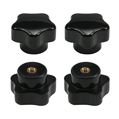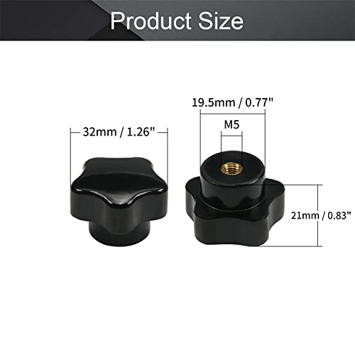 Othmro 4 pomelli per dadi di bloccaggio a stella, M5 x 32 mm, filettatura femmina, viti di serraggio, viti di serraggio, maniglia a stella, parti di ricambio per seghe trapano, colore: nero