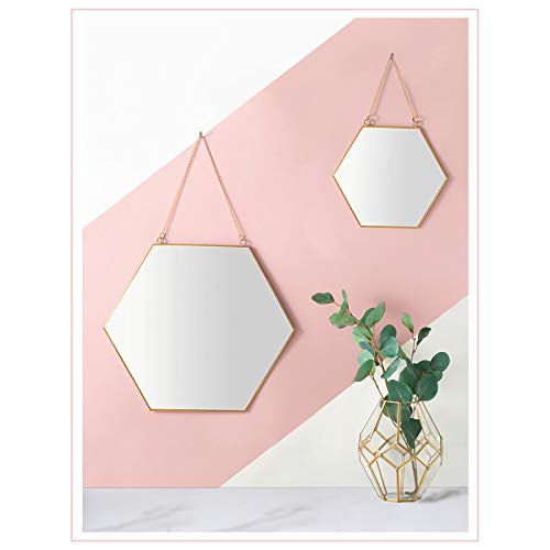 OTOTEC Medio Dimensioni Appeso Specchio Da Parete Esagonale Decor Ottone Cornici Casa Bagno Camera Da Letto Soggiorno Ingresso Moderno Vintage 24 cm