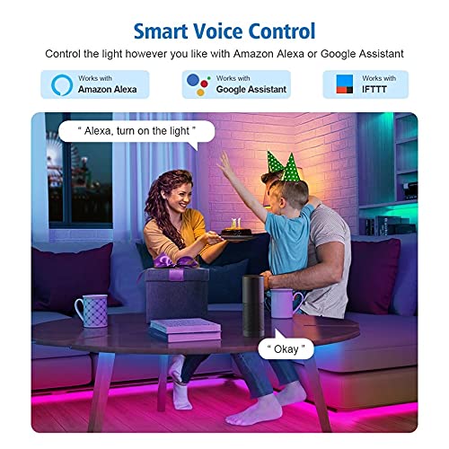 Allo stesso tempo, questo Led Tape è compatibile con Alexa Echo, Google Home, libera le mani per controllare le luci, un facile controllo vocale, come accendere / spegnere, cambiare i colori, la luminosità, ecc.