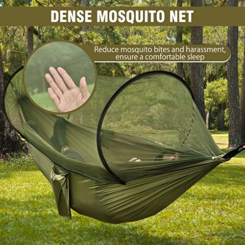 OTraki Amaca Campeggio, Amaca con Zanzariera Portatile, Amaca Matrimoniale con supporto per Esterno Interno Giardino bali, Non facile da Strappare & Resistente all'usura (290 x 140 cm,Verde Oliva)