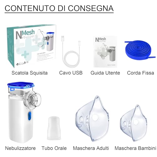 Ottimizzato Aerosol Ultrasuoni Silenzioso Portatile per Bambini e Adulti, MROOYI Nebulizzatore Aerosol Portatile, Senza Fili Mesh Inalatore Nebulizer Areosol per Casa e Viaggio (Blu Cielo)