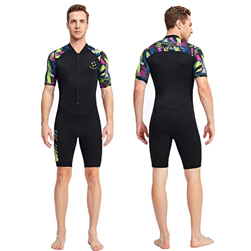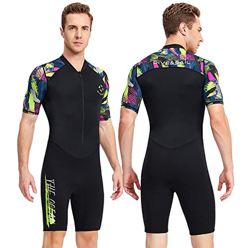 OttoBen Muta corta da uomo in neoprene sottile, 1,5 mm, con stampa estiva, per nuoto, snorkeling, surf, protezione solare, in nylon, termico, pantaloncini in neoprene, colore nero, taglia M