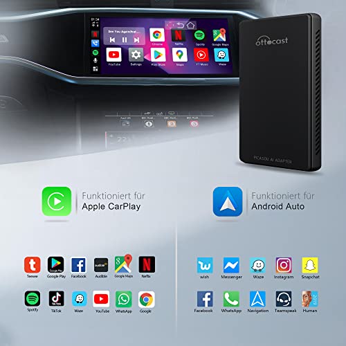 OTTOCAST CarPlay Wireless AI Box Android 9.0 Sistema 4+64GB,GPS OEM Incorporato,Qualcomm 8 Core,2.4G/5G WiFi, Compatibile Wireless CarPlay, Wireless Android Auto,Google Play Apps,YouTube Netflix ecc.