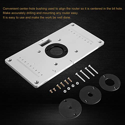 Un set di strumenti per la lavorazione del legno include 1 piastra inserto per tavolo router, 4 anelli inserti router e alcune viti di fissaggio