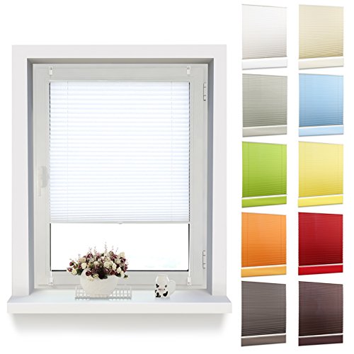 Oubo Persiana tenda plissettata, senza viti, fissaggio a morsetto, Tessuto, bianco, 45 x 120 cm