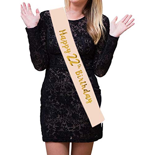 ♕ Fascia lucida: la cintura ha le parole "Happy 22th Birthday" contrassegnate da una lamina d'oro che ti fanno risaltare.