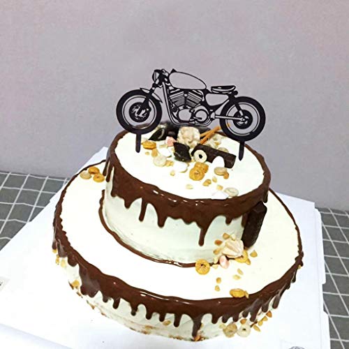Ouceanwin 4 Pezzi Cake Topper Moto Oro Nero Acrilico Happy Birthday Cake Topper Glitter Star Decorazione Torta di Compleanno, Decorazione Torta Cake Topper Picks per Uomo Ragazzo