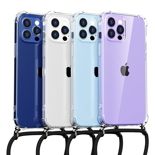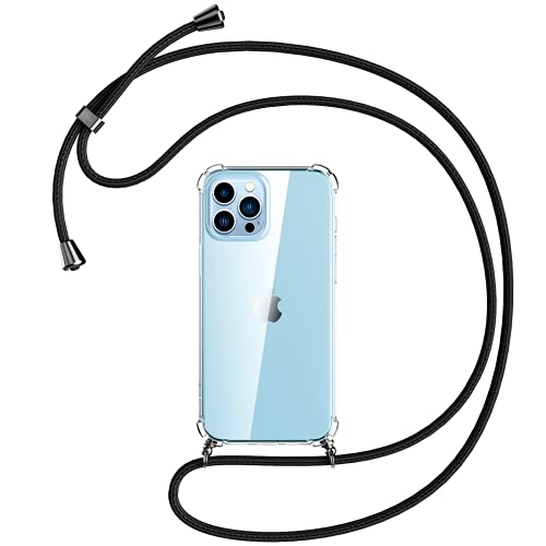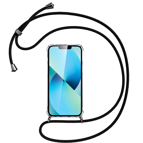 Oududianzi Cover Compatibile con iPhone 13 Pro, Coprire con Un Pratico Cordino, Paraurti in Silicone TPU Morbido Trasparente Custodia -Cordino Nero