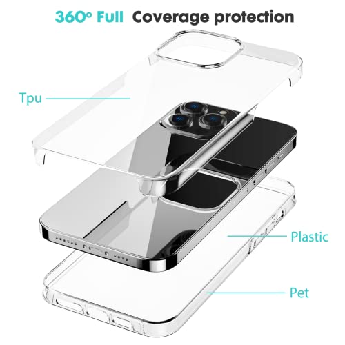 Oududianzi Cover Compatibile con iPhone 13, 360 Gradi Protezione Progettata, Trasparente Ultra Sottile in Silicone TPU Anteriore e PC Indietro Custodia -Trasparente