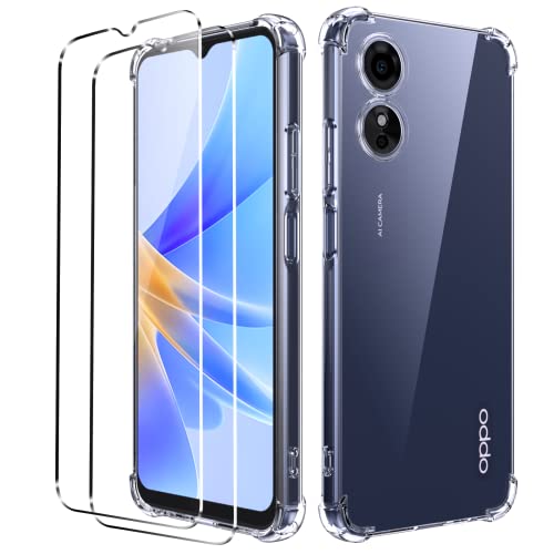 Oududianzi- Cover per Oppo A17 Custodia, con 2 Pack Pellicola Protettiva Vetro Temperato, Custodia Morbido Silicone Trasparente Case con Cuscino D'aria Antiurto Paraurti