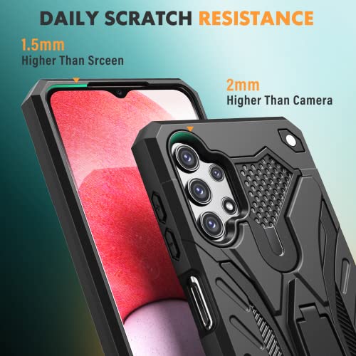 Oududianzi-Cover per Samsung Galaxy A13 4G/5G/ Samsung Galaxy A04s Custodia [2X Vetro Temperato] [Supporto Stereo] [PC Rigido Militare + TPU Silicone Bumper] Doppia Armour Protezione Antiurto-Nero
