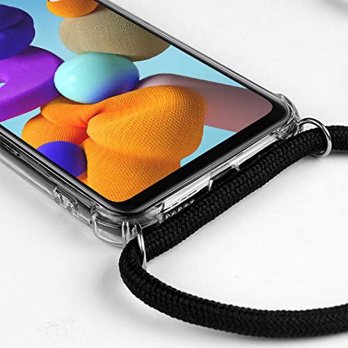 Oududianzi Cover per Samsung Galaxy A21s, Coprire con Un Pratico Cordino, Paraurti in Silicone TPU Morbido Trasparente Custodia -Cordino Nero