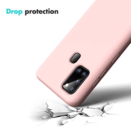 Oududianzi Cover per Samsung Galaxy A21s,Pellicola Protettiva in Vetro Temperato, Silicone Liquida Case Molle di TPU, Gomma Gel di Silicone Liquida Antiurto Custodia per Samsung Galaxy A21s -Rosa