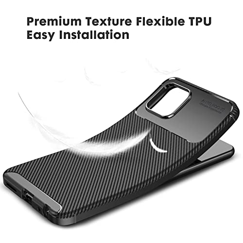 Oududianzi - Cover per Samsung Galaxy A22 5G + [3X Pellicola Protettiva in Vetro Temperato] [Texture in Fibra di Carbonio] Silicone Morbido Antiurto TPU Ultra Sottile - Nero