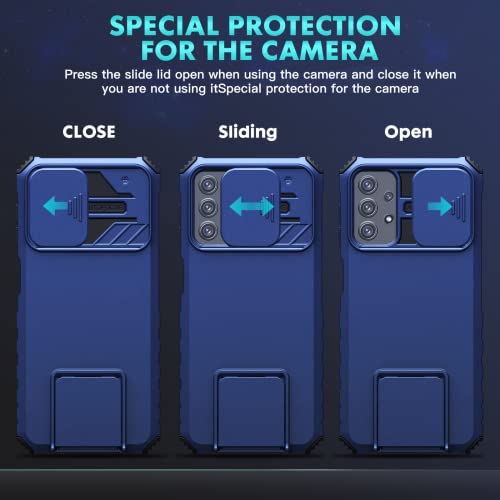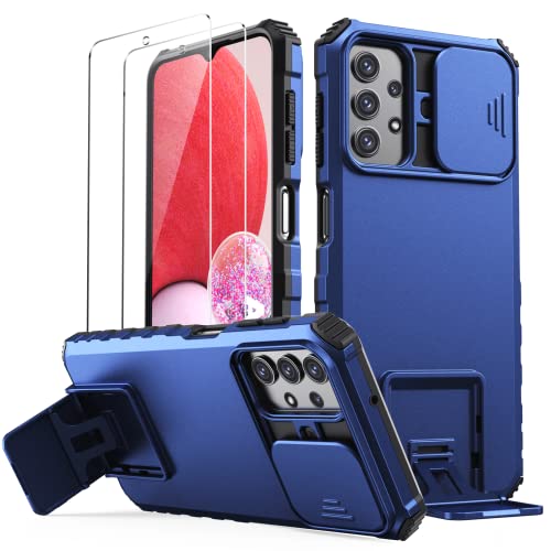Oududianzi - Cover per Samsung Galaxy A13, [2X Pellicola Protettiva in Vetro Temperato] protezione della fotocamera con cover scorrevole, custodia per telefono stereoscopica rimovibile - Blu