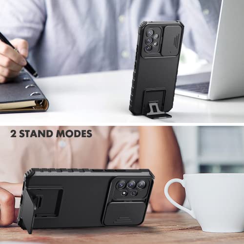 Oududianzi - Cover per Samsung Galaxy A53, [2X Pellicola Protettiva in Vetro Temperato] protezione della fotocamera con cover scorrevole, custodia per telefono stereoscopica rimovibile - Nera