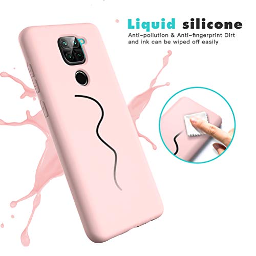 Oududianzi Cover per Xiaomi Redmi Note 9,Pellicola Protettiva in Vetro Temperato, Silicone Liquida Case Molle di TPU, Gomma Gel di Silicone Liquida Antiurto Custodia per Xiaomi Redmi Note 9 -Rosa