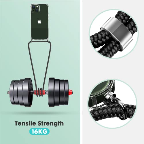Oududianzi - Custodia compatibile con iPhone 13, custodia per telefono con cordino pratico cordino, trasparente in silicone TPU bumper morbido cordicella - Nero