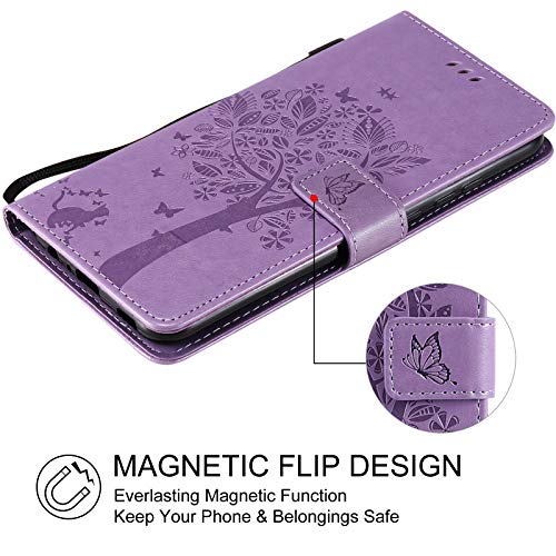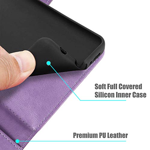 Oududianzi Custodia per Samsung Galaxy A02S/A03S/M02S + [ 2x Vetro Temperato ] Flip Portafoglio Cover Pelle PU Case [Slot Cart] [Chiusura Magnetica] [Funzione Stand] - Viola