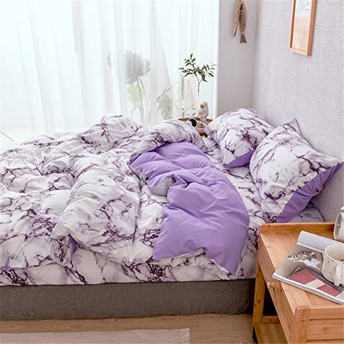 Ouduo Biancheria da Letto Marmo, Set Copripiumini e Federe Singolo Matrimoniali Set di Biancheria da Letto con Copripiumino e Federe per Ragazza Ragazzo (Viola,150x200cm-2 Pezzi)