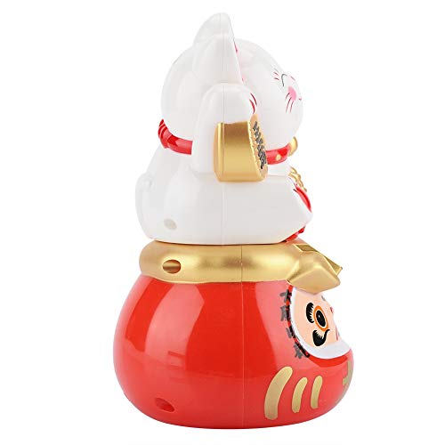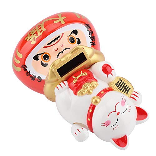 Oueaen Gatto della Fortuna - Maneki Neko Alimentato ad energia Solare, Adorabile Gatto della Fortuna Che saluta con la Mano(Bianca)