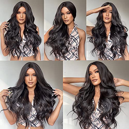 OUFEI Parrucche Lunghe Ondulate Nero Marrone per le Donne Capelli Sintetici Naturali Parrucche Resistenti al Calore per il Partito Quotidiano Cosplay Indossare