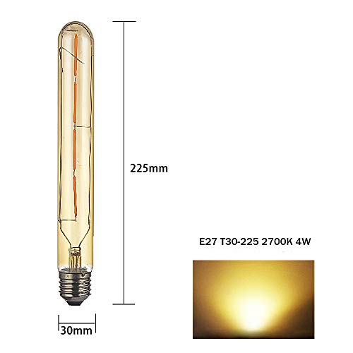 OUGEER 5-pezzi Edison Retro Filament Long Tube T30 Lampadina LED E27 Lampada a Spirale 4W, 400LM, AC 220V-240V, Equivalente Lampadina Alogena 40W Bianca Calda 2300k