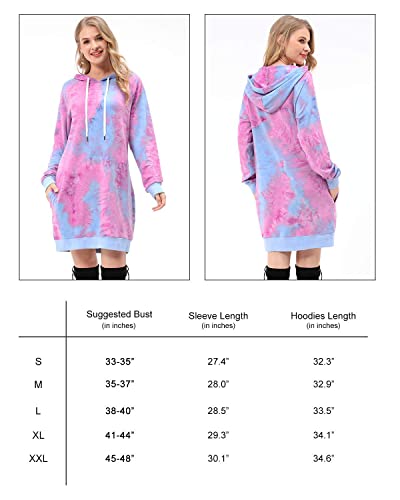 OUGES Felpe con Cappuccio da Donna Tie Dye/Leopard Tasche a Maniche Lunghe Abito Maglione con Cappuccio Tunica con Cappuccio Felpa Leggera Top(Tie Dye-2, M)