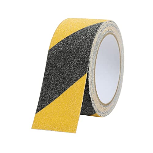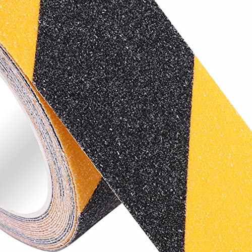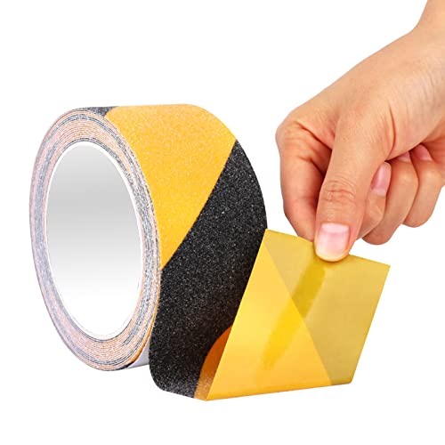OUGPIU Nastro Antiscivolo Autoadesivo per Uso Interno ed Esterno, Nastro Antiscivolo 5cmx10 m Strisce Antiscivolo per Scale,Gradini, Scalette e Pavimenti Scivolosi,Twill Nero e Giallo